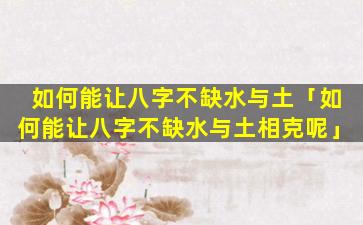 在八字命理中,“水”和“土”是,相生的关系并非相克。因,此“不”存在。让八字不缺水 🐟 与土 🐦 相克的说 🐱 法