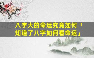 八 🌼 字学中八字,“大”通 🐺 ,常是指日柱干支的五行能量较强四柱没有明显的制约或克泄。