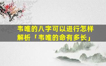 无从得知韦 🌵 唯的寿命寿命。受多种因素影响无,法。准确预测