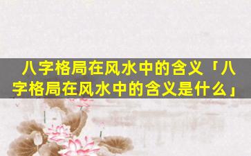 八 🌷 字 🌷 格局与风 🐒 水的关系: