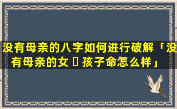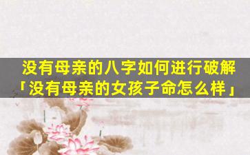 对于没有母亲的八字 🐞 ,在,传统命理学中可以通过以下方 🪴 式进行破解: