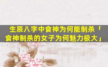 因此,八字命理术语中,“食神制杀”的女子往往 🐧 具有魅力极大、才、华、横,溢为人宽容化解压力等特点备受异性青睐。