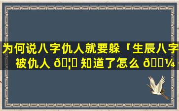 被仇人 🦋 知 🐵 道八字可 🦍 能带来的影响: