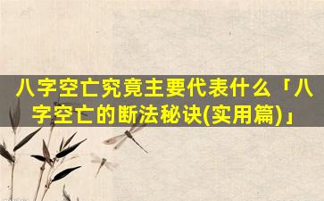 在八字命 🐺 理中八字,"空"亡,是一种 🐵 特殊的状态表示命主在人生某 🌳 些阶段会遇到困难或阻碍。