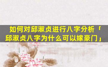 从八字来看,邱淑贞确实具 🐟 有比较有利于 🐒 嫁入豪门的命格特征。不,过,婚姻的成败还受多种因素影响包括个人努力、际,遇。等仅凭八字判断并不一定完全准确