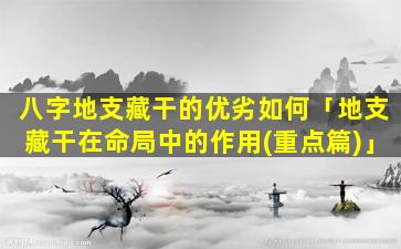 在八字命理中,地支中所藏的天干称为地支藏干地支 🌳 藏干的“优”。劣。对命格的影响很大