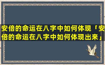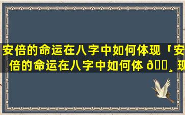 综合来看 🍁 ,安,倍,的,八,字中用神喜忌失衡忌神旺盛加上流年运势不佳遇上金水克火之凶日最终导致了遇 🐦 刺事件的发生。