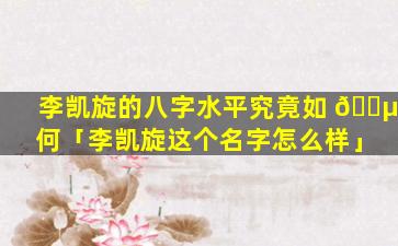 总体而言,李凯旋的八 🦊 字水平因人而异。有,些人。认,为。他的水平很高而另一些人则认为他的水平 🐼 一般建议综合多方意见谨慎参考他的八字分析和建议