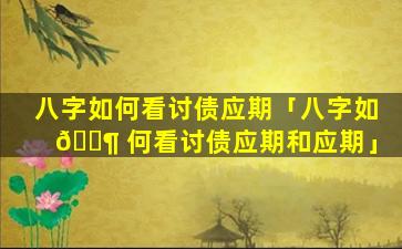 八字中讨债 🍁 应期是指个人命中带有讨债星,这,些人 🕷 一生中容易遇到一些特殊的人际关系纠纷往往表现为债务、官、司纠纷等讨债应期 🦉 一。般出现在以下年份: