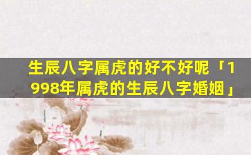 根据生辰八字 🐺 五行关系,1998年属虎人的婚姻运势如下: