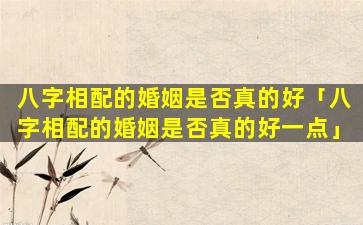 八字相配的婚姻不一定都好一点,也 🌸 不一定都不好