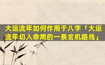 大运流年切入命 🕸 局的 🐼 玄机路线