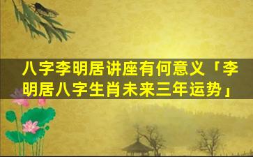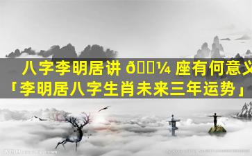 李 🐶 明居八字 🌸 讲座 🐠 的意义