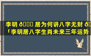 李明居老师八 🌲 字生肖运势 🌼 :未 🐅 来三年