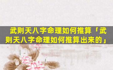 武 🦄 则天的八字命 🐡 理推算 🦟 案例
