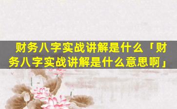 财务八字实战 🐋 讲解是一种基于传统中国命理学和 🐬 现代财务分析相结合的实践方法,旨在通过分析个人的 🦟 八字命理来评估其财运、投资决策和理财习惯。