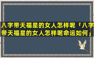 总体来说 🌾 ,八,字,带 🦢 ,天,福 🍁 ,星的女人命运较好福禄双全贵人相助家庭幸福事业顺利健康长寿。只,要,把。握运势修心养性就能过上富足安稳的人生