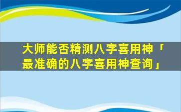 八字喜 🌺 用神的精测是一个 🌷 复杂的过程,需要专业人士的指导才能 🌹 得到准确的结果。