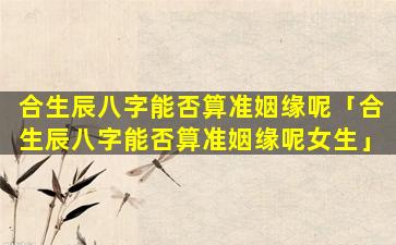 合生辰八字算姻 🐛 缘的实际 🦍 情况