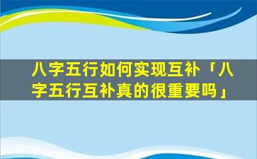 八字五行互补的重要性在传统命理学 🐅 中受到重视,但对其重要性存在不 🐘 同的观点。