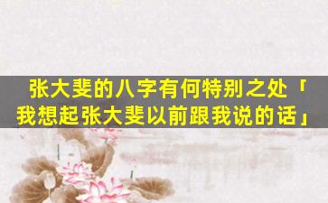 特别之处:张大斐的八字有两个 🐛 特殊之 🐎 处: