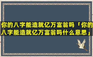 所谓“八字能造就亿万富翁”是一种流行的说法,指的是 🐦 ,根据一个人的出生时间和日期推算出的八字命理能够预测其未来的财富和财运。