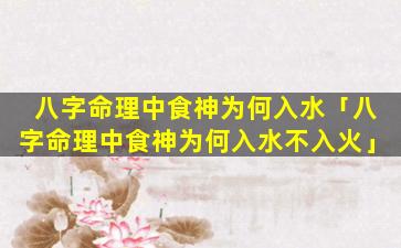 八 🕸 字命理中食神入水或入火,需 🌾 要结合八字整体格局来判断。不,能。一概而论食神只能入 🌾 水而不入火