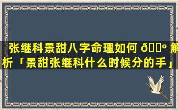 八字合婚:张继科八字身强,食,神生财事业有成;景,甜八字,偏,弱伤 🐡 官生财才华 🐝 出众财运 🐎 亨通。