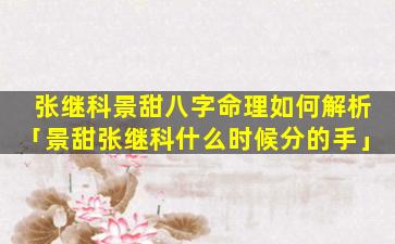 两 🦢 人八字互补,张,继,科的食神可以生扶景甜的偏财景 🐞 甜的伤官可以激发张继科的财运事业上可以相互扶持。