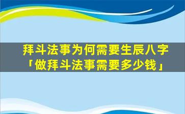 拜斗法事需要生 🌼 辰八 🌵 字主要出于以下原 🦟 因: