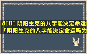 阴阳生克对命运有一定的影响,但并不是决定因素。八,字命理是一个复杂的体系需要综合考虑八字格局、五、行,相生。相克大运流年等 🌻 因素才 🐠 能对一个人的命运进行准确预测