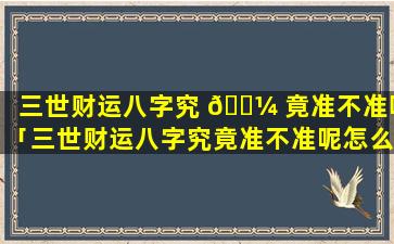 判 🐺 断三世财运八字 🐡 准不准