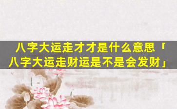 在八字命理中八字,"大"运 🍀 走才才是指大运 🦊 流年行至才星 🌲 的运程。