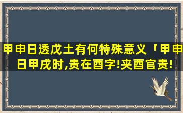 甲申日戊土透出,具有以 🦊 下特 🐅 殊 🌳 意义: