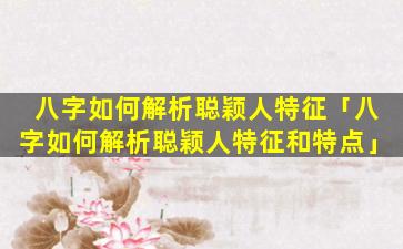 八字解析聪 🦢 颖人 🦅 特征