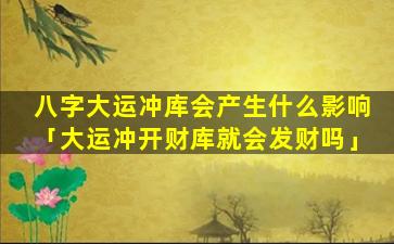 大运冲财库的影响程 🦅 度因人而异,具 🌼 体还要结合八字命理和流年运势综合判断。