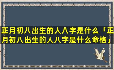 农历正月初八出生的 🐈 人 🐱 命 🌷 运解析
