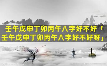 壬 💮 午 🌾 戊申丁卯丙 🐬 午八字分析