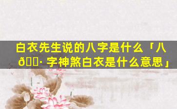 “八字日柱白衣”是一种命理术语 🐈 ,通常用来描述八字命格的一种特殊格局。