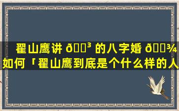翟山鹰是中国著 🕸 名的心理咨询 🐒 师和命理学家,尤其擅长八字预测婚姻。