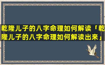 乾 🐦 隆 🐈 儿子的八字命理 🦈