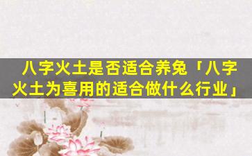 八 🌻 字中火土旺盛的人是否适合养兔子,需,要具体分 🌹 析八字中的其他信息包括生辰八字、五、行生克十神 🦄 旺衰等因素。