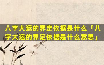 八字大 🦁 运的界定 🦉 依据主要有两种 🦟 :