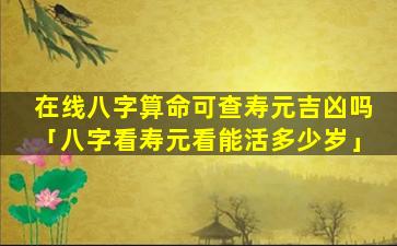 在 🪴 线八字算命对寿元吉凶的 🌿 准 🌻 确性