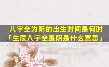 八字全阴的出生时间是指出生日柱的八个字中,天,干地支全部为阴性这种组合极 🐴 为罕 🐦 见。