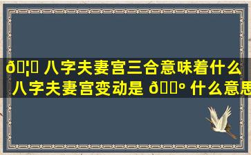 夫妻宫,八,字中表示婚姻感情关系的宫位 🐡 通常以日柱的地支为准夫妻宫。相,合。意味着婚姻比较稳定和谐