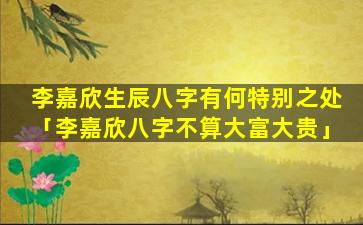 认为不算大富大贵的观 🐯 点认为:李嘉欣的八字阳刃格过旺,容易招惹是非和争端八字。中,日。柱伏吟说明婚 🐦 姻不顺