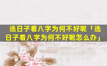 为何选日子看 🕸 八字 🌷 不好 🕸 ?