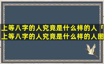 拥 🕊 有上等八字的人通常具有 🌻 以下特点: