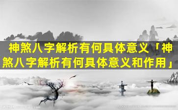 神 🍁 煞八字解析的具 🐴 体意义包括 🐱 :